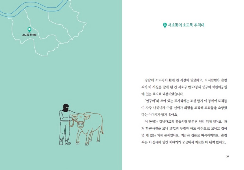 현재 서울 아니 대한민국을 대표하는 도시 강남은 어떻게 지금의 모습이 되었을까요? 강남, 서초, 송파 등 강남 3구가 지금처럼 번화한 모습이 되기 전에는 어떤 이야기들을 품고 있었을까요? 서울 강남의 어제와 오늘 이야기를 담은 책 《슬렁 씨의 도시 탐험-서울 강남》이 현북스에서 출간되었습니다. 도시탐험가 슬렁 씨가 구석구석을 발로 누비며 찾아낸 강남의 어제와 오늘 모습을 만나 볼까요.