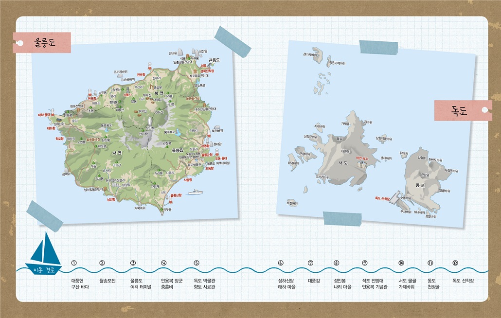 그러면 우리 울릉도와 독도로 떠나볼까요? 마다할 사람은 아무도 없을 겁니다. 더욱이 가지 못할 거라는 사람도 없을 겁니다. 우리나라 사람이면 누구나 마음만 먹으면 언제든지 갈 수 있지요. 왜 그럴까요? 우리 땅이니까요.