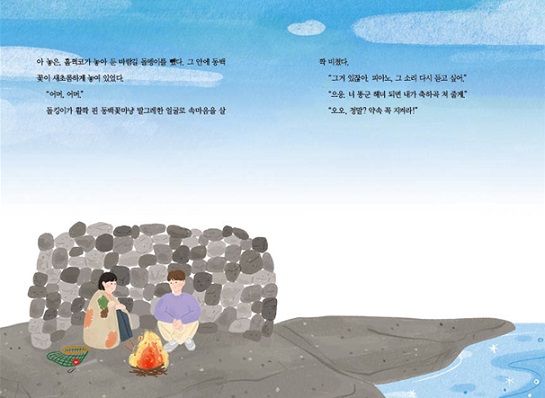 그래서 돌킹이는 며칠 전부터 얕은 바다에 얼굴을 넣어 숨 참는 연습을 했다. 갯가에서 걸음마를 떼고 바닷가가 놀이터 인 양 자랐지만 깊은 바닷물은 깜깜한 밤처럼 무서웠다. 돌킹이는 불턱을 핑계로 돌을 하나하나 쌓으며 두려움을 떨치고 싶었다.
