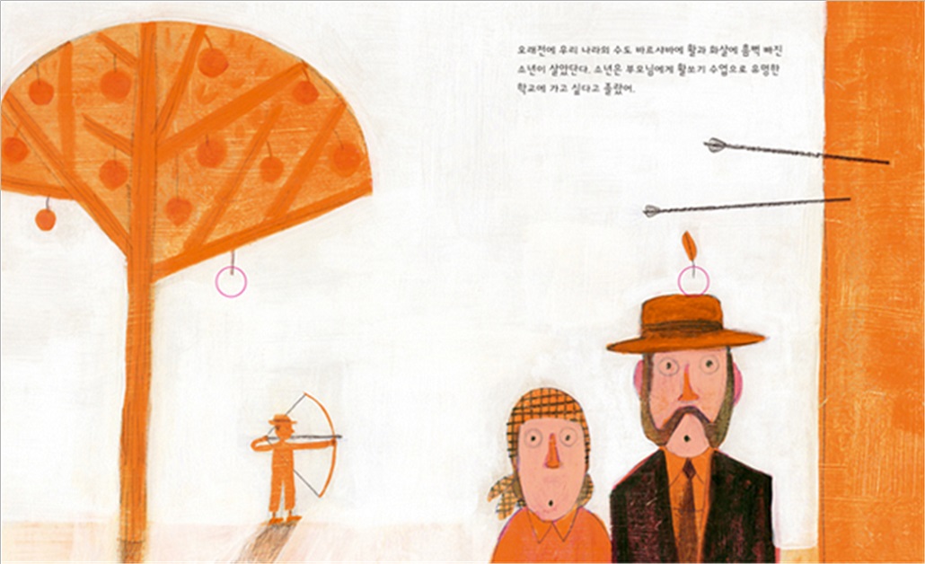 활과 화살에 흠뻑 빠진 소년이 있었다. 소년은 고향을 떠나 활쏘기 수업으로 유명한 학교에 유학을 간다. 4년이 넘게 활쏘기 훈련에 전념한 그는 이제 어떤 목표물이라도 정확하게 맞힐 수 있다는 자신감으로 가득 찬 청년이 되었다. 청년은 ‘세계 활쏘기 대회’에 나가기 위해 대회가 열리는 도시로 간다. 그리고 도시에서 깜짝 놀랄 만한 광경을 목격한다. 기나긴 울타리를 따라 그려진 수백 개의 과녁마다 정확히 한가운데에 구멍이 뚫려 있었던 것이다. 청년이 도대체 누가 저렇게 과녁의 한가운데를, 그것도 수백 번도 넘게 정확하게 맞힌 거냐고 묻자 열 살 남짓해 보이는 한 소년이 대답한다. “그건 바로 저예요.”