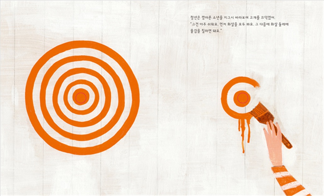 그리고 이렇게 비결을 덧붙인다. “먼저 화살을 모두 쏴요. 그 다음에 화살 둘레에 물감을 칠하면 돼요.”