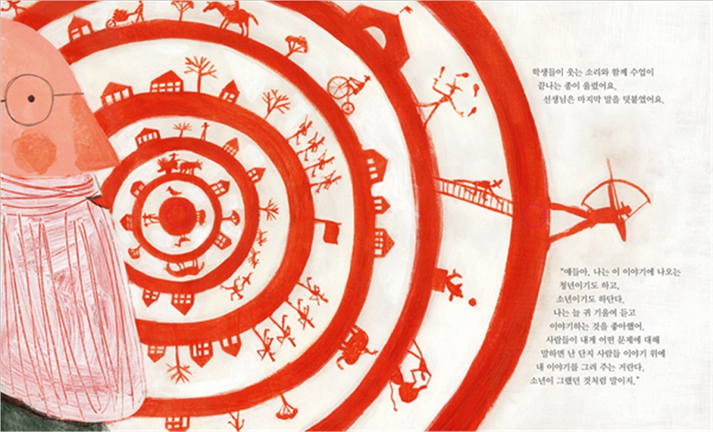 이야기를 마친 할아버지는 자신이 활을 쏘던 청년인 동시에 소년이기도 하다고 말한다. 자신은 단지 사람들이 털어놓는 이야기에 자신의 이야기를 그려 줄 뿐이며, 이것이 바로 모든 사람의 질문에 알맞은 해결책을 내놓는 비밀이라고.