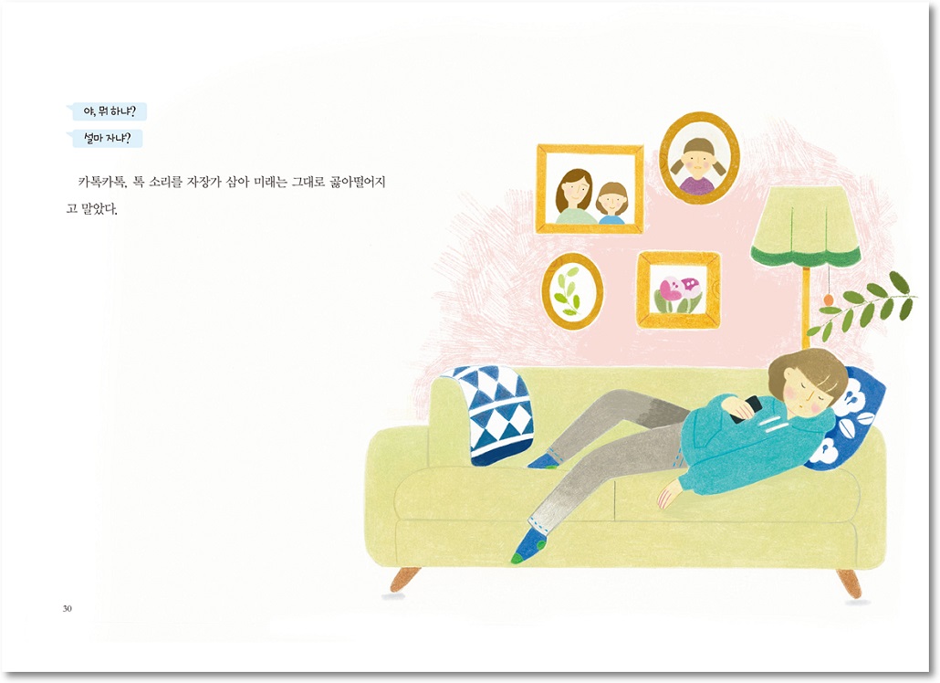 그랬던 미래가 아빠를 꺼리게 된 건 아빠가 재혼을 하면서부터다. 아빠를 만나는 것도 싫어졌고 전화가 와도 하나도 반갑지 않았다. 미래가 아빠를 피하자 아빠도 차츰 연락이 뜸해졌고 아빠 집에 가는 건 생각조차 하지 않았다. 아빠가 다른 아줌마랑 사는 모습은 상상만 해도 끔찍하기 때문이었다.