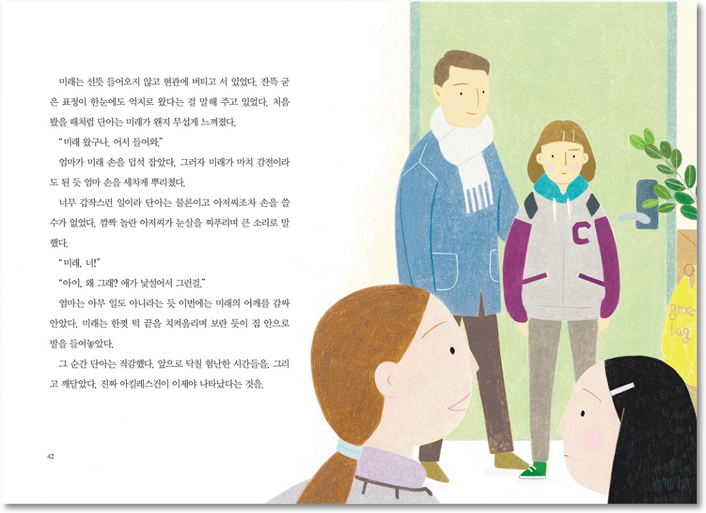 단아와 미래도 그랬어요. 누구보다 사랑한 엄마와 아빠였기 때문에 나 말고 또 다른 가족을 만드는 걸 이해할 수가 없었죠. 하지만 세상일이란 게 다 함께 마음먹은 대로 흘러가는 것만은 아니에요. 단아에겐 단아의 생각이 있고 미래에겐 미래만의 계획이 있듯 우린 모두 자신의 꿈을 향해 나아가면 됩니다. 그러다 보면 자연스럽게 나의 꿈이 소중하듯 다른 사람의 꿈도 충분히 가치가 있다는 것을 알게 됩니다.