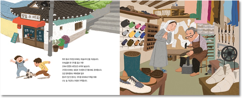 수녀님들이 헌 구두를 가지고 가면 고쳐서 완전히 새것으로 바꾸어 놓습니다. 고급 양화점이나 백화점에 밀려 장사가 잘 안 된다는 구두점 아저씨네 가족을 위해 나는 늘 기도하는 마음이 가득합니다.