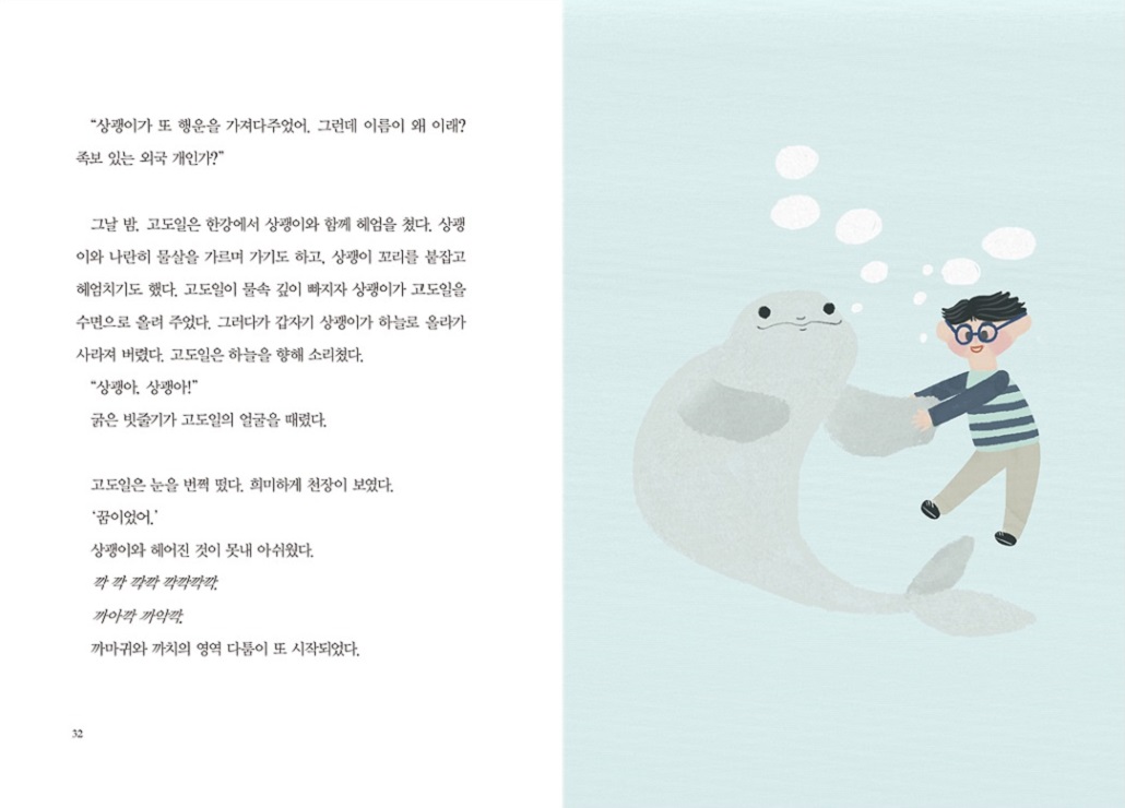 고도일 탐정은 잃어버린 동물 찾기를 전문으로 하는 탐정이다. 어느 날 멸종 위기 동물인 상괭이가 한강에 나타났다가 사라진다. 사람들은 상괭이에 반짝 관심을 보이지만 금세 시들해지고 아무도 관심을 갖지 않는다.