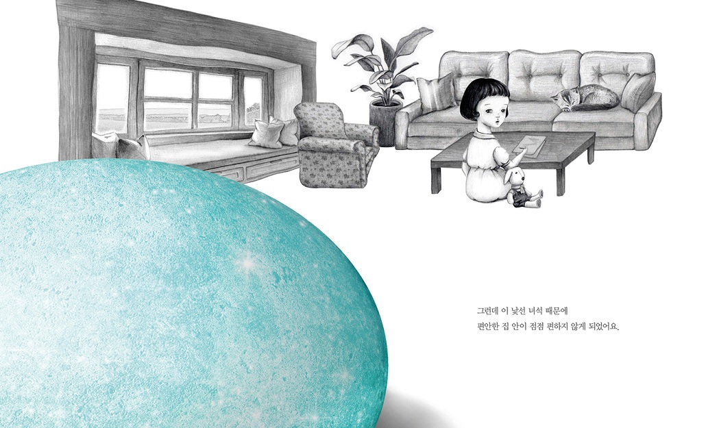 “어느 날 아침, 커다란 알이 여자아이 앞에 나타납니다. 아이는 점점