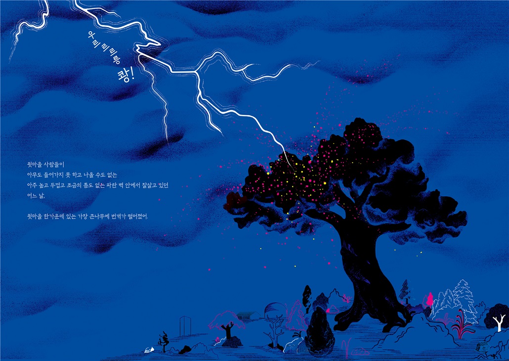 섬세한 점과 선으로 구성한 화면은 주제를 극적으로 표현하는 데에 아주 효과적이다. 강렬한 파랑과 노랑, 빨강 등의 원색의 사용은 외면하고 싶은 우리의 어두운 속성을 강렬하게 드러내 보인다. 화면에 담고 있는 공간의 크기가 책이 전하고 있는 메시지의 공간적 확장성을 잘 보여 주고 있다. 이전에도 여러 번 얘기되었던 이야기가 새롭게 다가오는 이유이다.