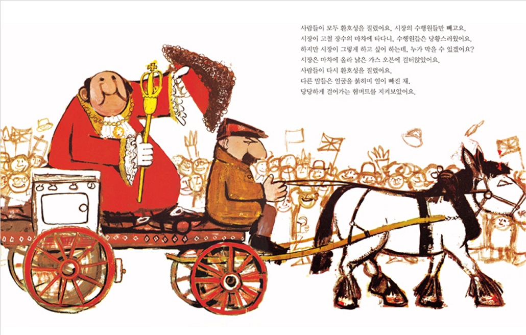 험버트는 무너진 마차와 양조장 말들을 대신해 시장을 시장 관저로 데려다 준다. 시장은 마차에 올라 낡은 가스 오븐에 걸터앉고, 사람들은 환호성을 지른다. 험버트는 아주 당당히 걸어간다. 시장 관저에 도착해서 시장은 퍼킨 씨와 험버트와 함께 사진사와 기자들 앞에 나란히 서서 사진도 찍는다. 시장이 여는 연회에 초정 받아서 특별한 트로피도 받고 양조장 말들처럼 1년에 한 번씩 휴가도 갈 수 있게 되었다. 험버트는 이제 특별한 말이 되었을까? 아니다. 그 뒤로 험버트는 여전히 퍼킨 씨와 함께 런던을 누비면서 고철을 모은다. 험버트의 삶은 달라진 것이 없다. 그럼, 험버트는 여전히 일하는 평범한 말일까? 아니다. 험버트는 원래 특별한 말이었다. 특별한 일을 해야지만 특별해 지는 것은 아니다. 세상에 특별하지 않은 존재는 없다. 작은 일을 한다고, 자신의 모습이 초라하다고 해서 특별하지 않은 것은 아니다, 세상에 모든 사람은, 아니 말이라고 해도 원래 특별하다. 우리 아이들에게도 말해주고 싶다. 너희는 모두 특별한 존재라고.