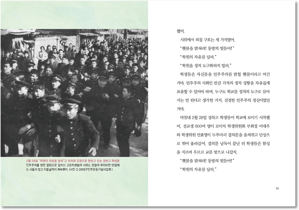 그래서 이 책은 4‧19혁명이 왜 일어났는지, 어떻게 전개되었는지, 혁명의 의미를 어떻게 이어 가야 하는지 알려 줘요. 오래도록 4‧19민주이념을 이어 가야 하는 까닭은, 우리의 민주주의가 아직 성숙하지 못해서예요. 민주주의가 위기를 겪을 때마다 4‧19혁명은 민주주의가 나아가야 할 방향을 일러 줘요. 이 책을 통해 우리나라 민주주의의 주춧돌인 4‧19혁명을 알아 가면서 민주주의의 의미와 가치를 되새기면 좋겠어요.